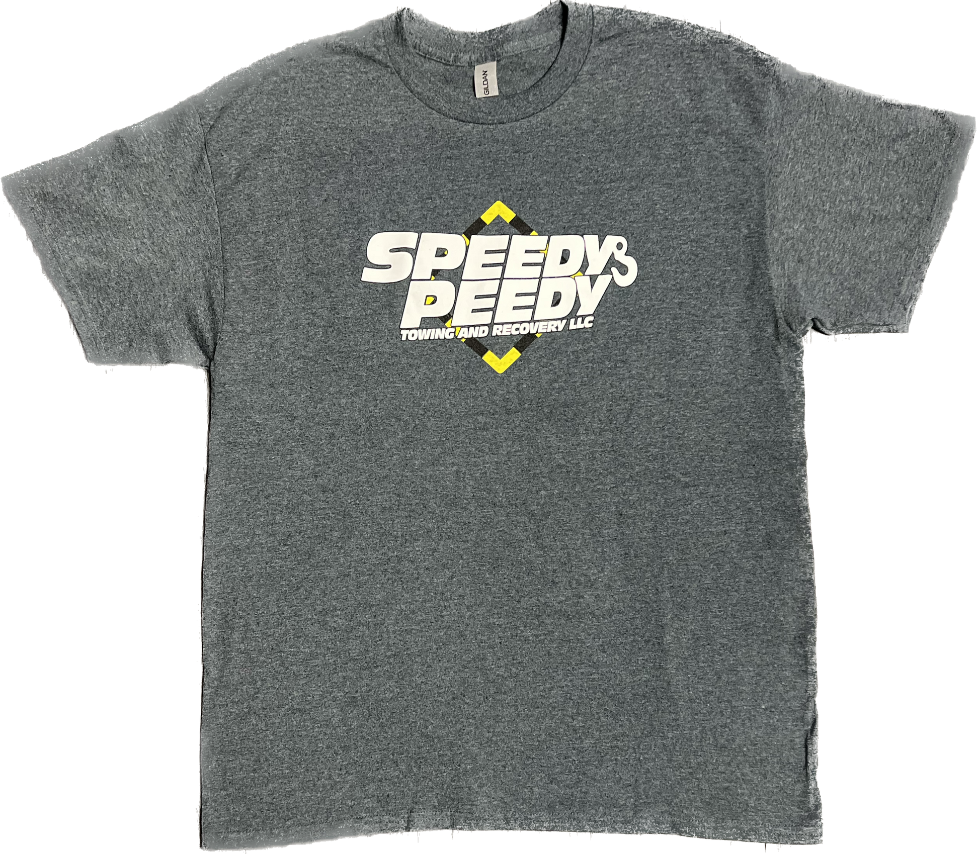Grey T-shirt with the Black, White and Yellow Towing Logo